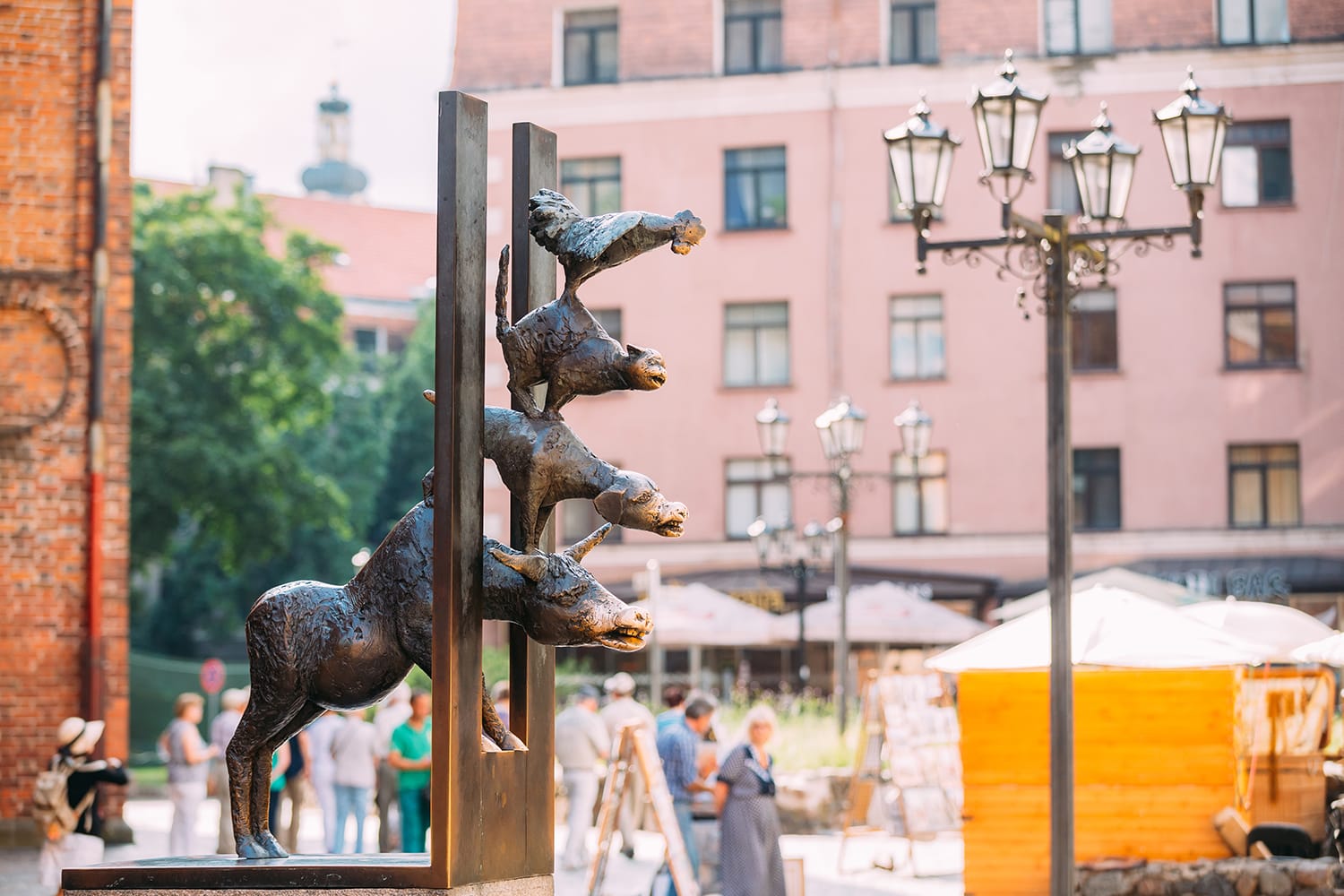 Après avoir visité l'église, dirigez-vous vers l'arrière pour voir le petit marché et les jardins. C’est également ici que se trouve l’une des statues les plus photographiées de la ville, laMusiciens de Brême. Cette sculpture d'animaux empilés les uns sur les autres est un cadeau de la ville allemande de Brême qui représente le conte de Grimm du même nom – et suscite beaucoup d'amour de la part des touristes.