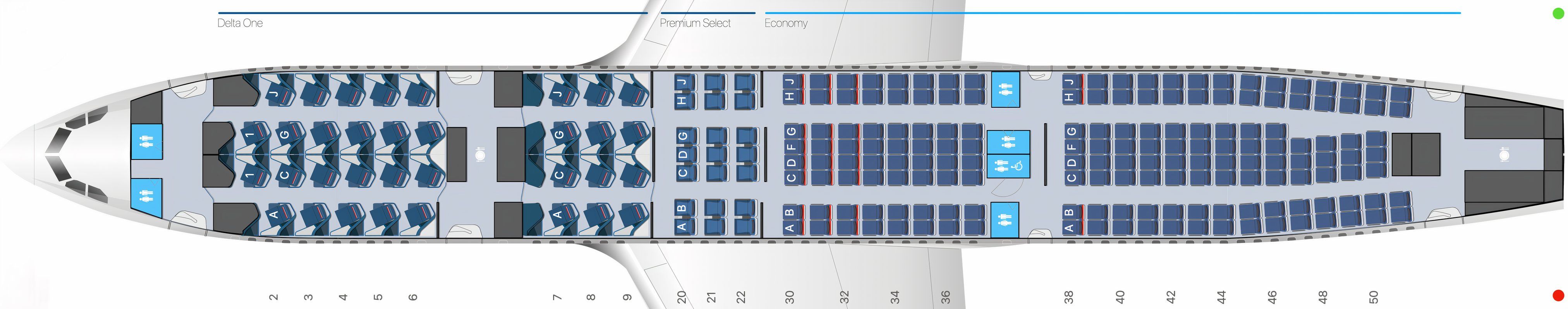 | Sièges | 282 sièges répartis en 4 classes : 34 Delta One ; 21 Delta Premium Sélect ; 24 Delta Confort ; 203 Cabine principale |