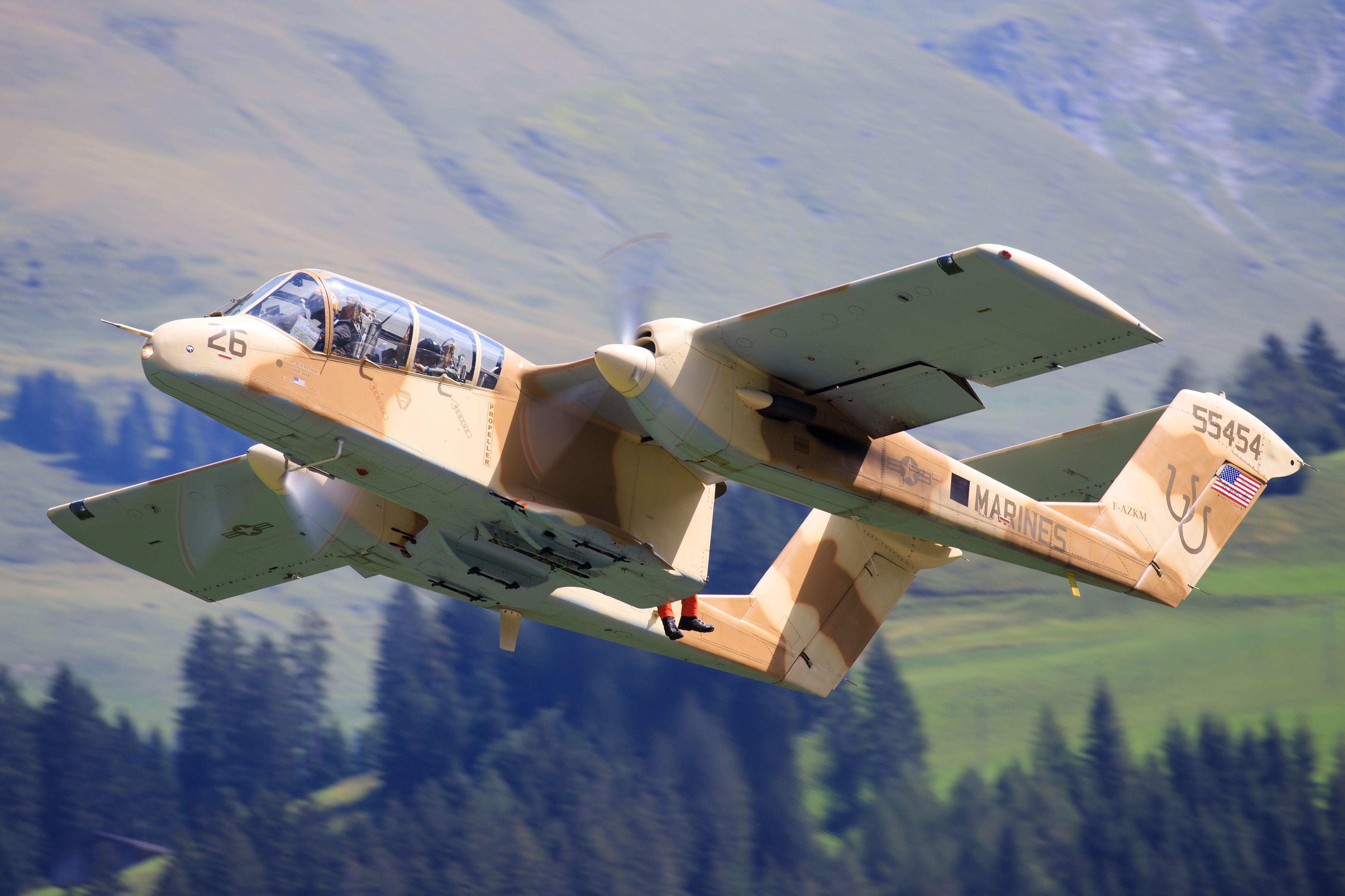 "Les missions du Bronco comprenaient l'observation, le contrôle aérien avancé, l'escorte d'hélicoptères, la reconnaissance armée, la détection de tirs d'artillerie, l'utilité et une attaque au sol limitée. L'USAF, cependant, a acquis le Bronco principalement comme avion de contrôle aérien avancé (FAC). À sa polyvalence s'ajoute un compartiment de fuselage arrière d'une capacité de 3 200 livres de fret, cinq soldats équipés de combat ou deux patients de litière et un assistant médical. "