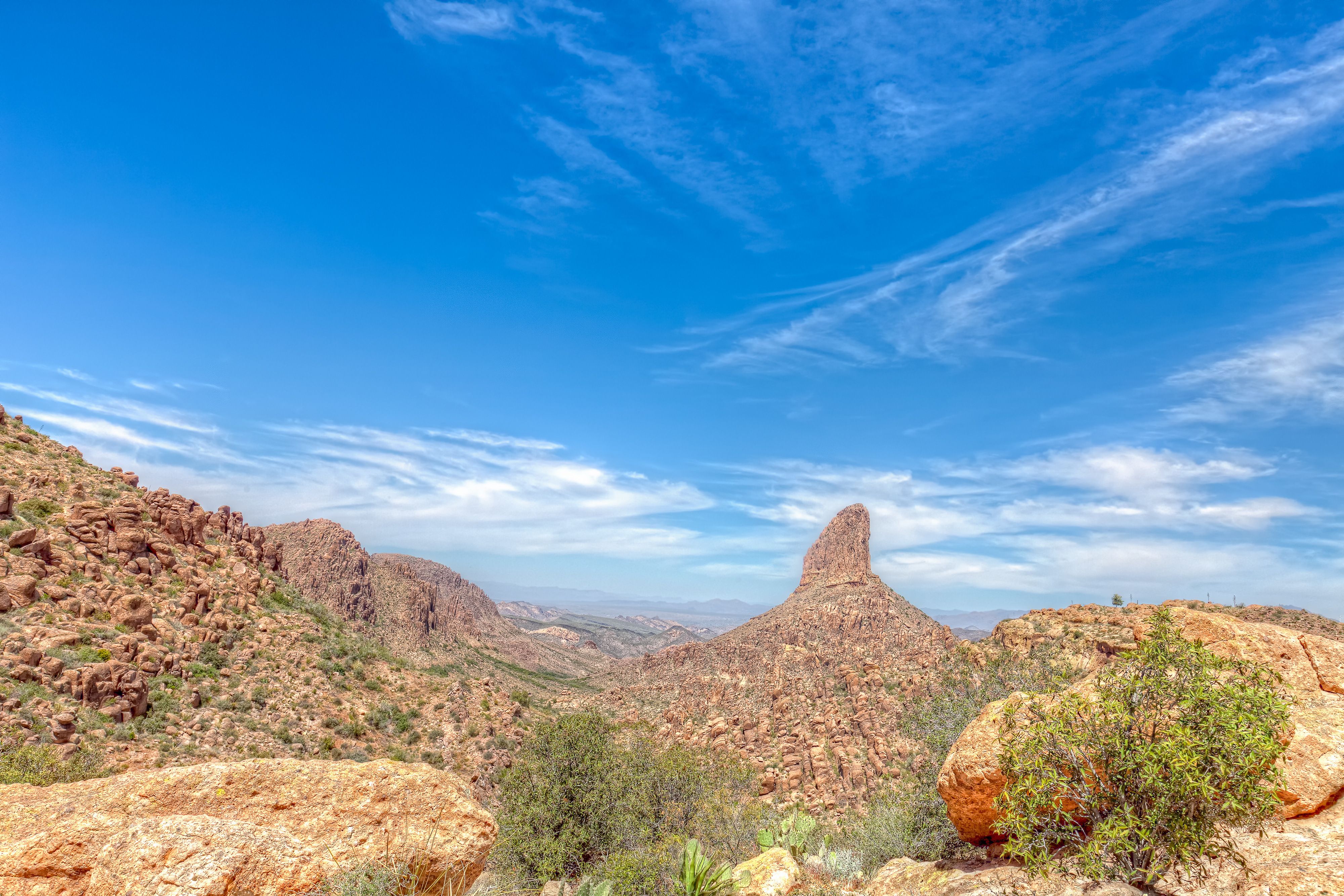 Les vues panoramiques depuis le sommet englobent toute la zone métropolitaine de Phoenix et le paysage désertique environnant, dépassant les vues limitées de Devil's Bridge. Avec son terrain diversifié, des pentes parsemées de saguaros aux parois rocheuses lisses, Flatiron offre une expérience de randonnée plus complète en Arizona.