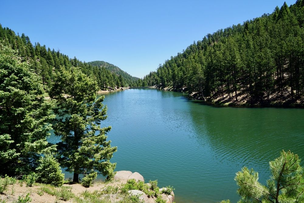 Réservoir de Palmer Lake lors d'une journée ensoleillée à Colorado Springs, États-Unis