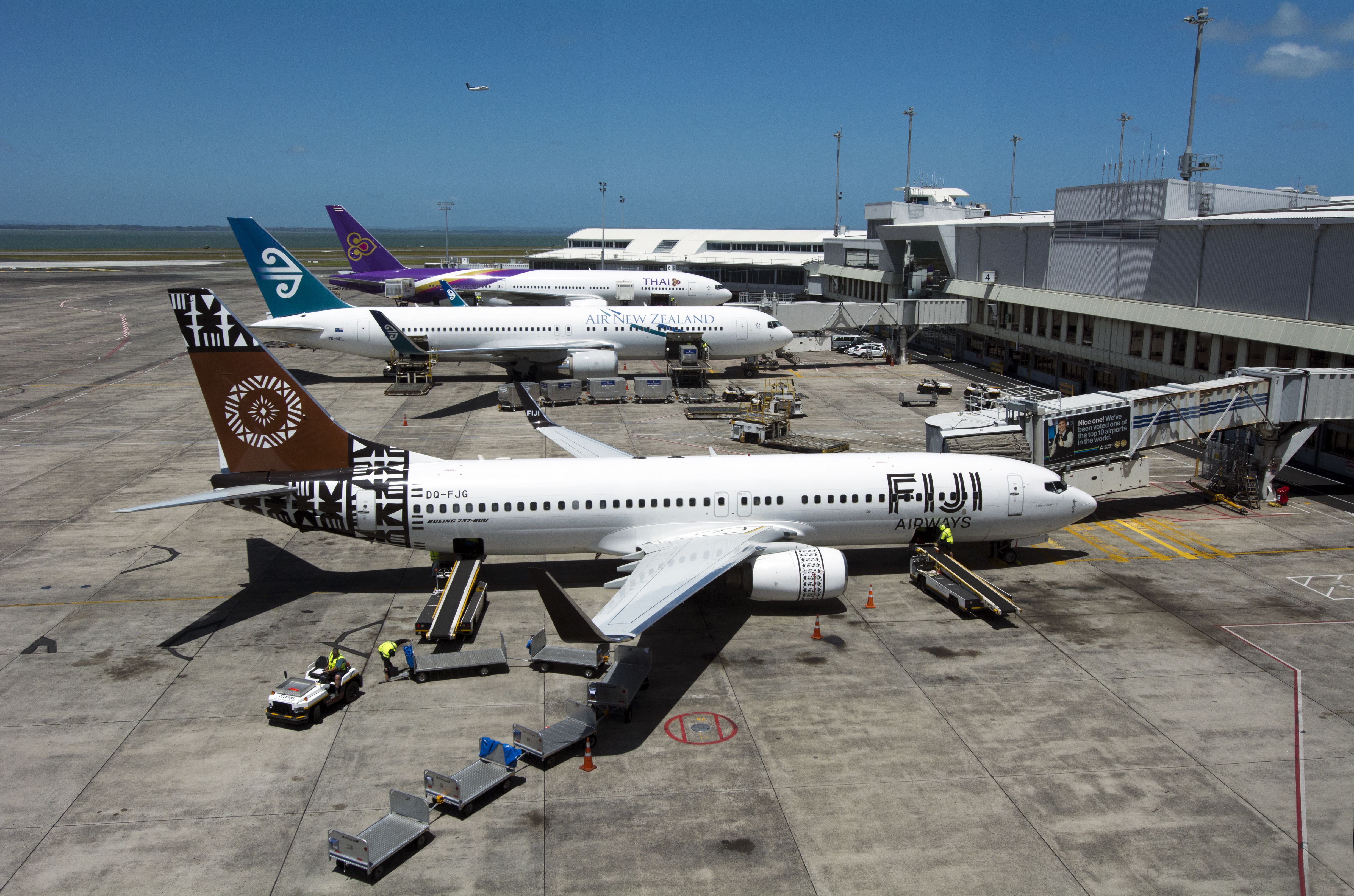 La plupart des cinq principales compagnies aériennes proposant des vols vers la Nouvelle-Zélande desservent l'aéroport d'Auckland, bien que l'aéroport de Christchurch soit souvent une autre option. Deux aéroports néo-zélandais (l'aéroport de Wellington et l'aéroport de Queenstown) sont connus pour être particulièrement difficiles d'accès.