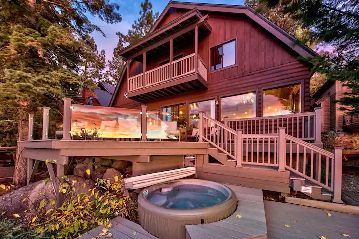 Avec une vue à couper le souffle sur le lac Tahoe et un grand patio pour profiter de la vue, cette sélection est idéale pour les familles qui veulent vraiment vivre pleinement les saisons. De plus, il y a un grill et un bain à remous à l'extérieur, permettant aux familles de profiter de leur temps en plein air.