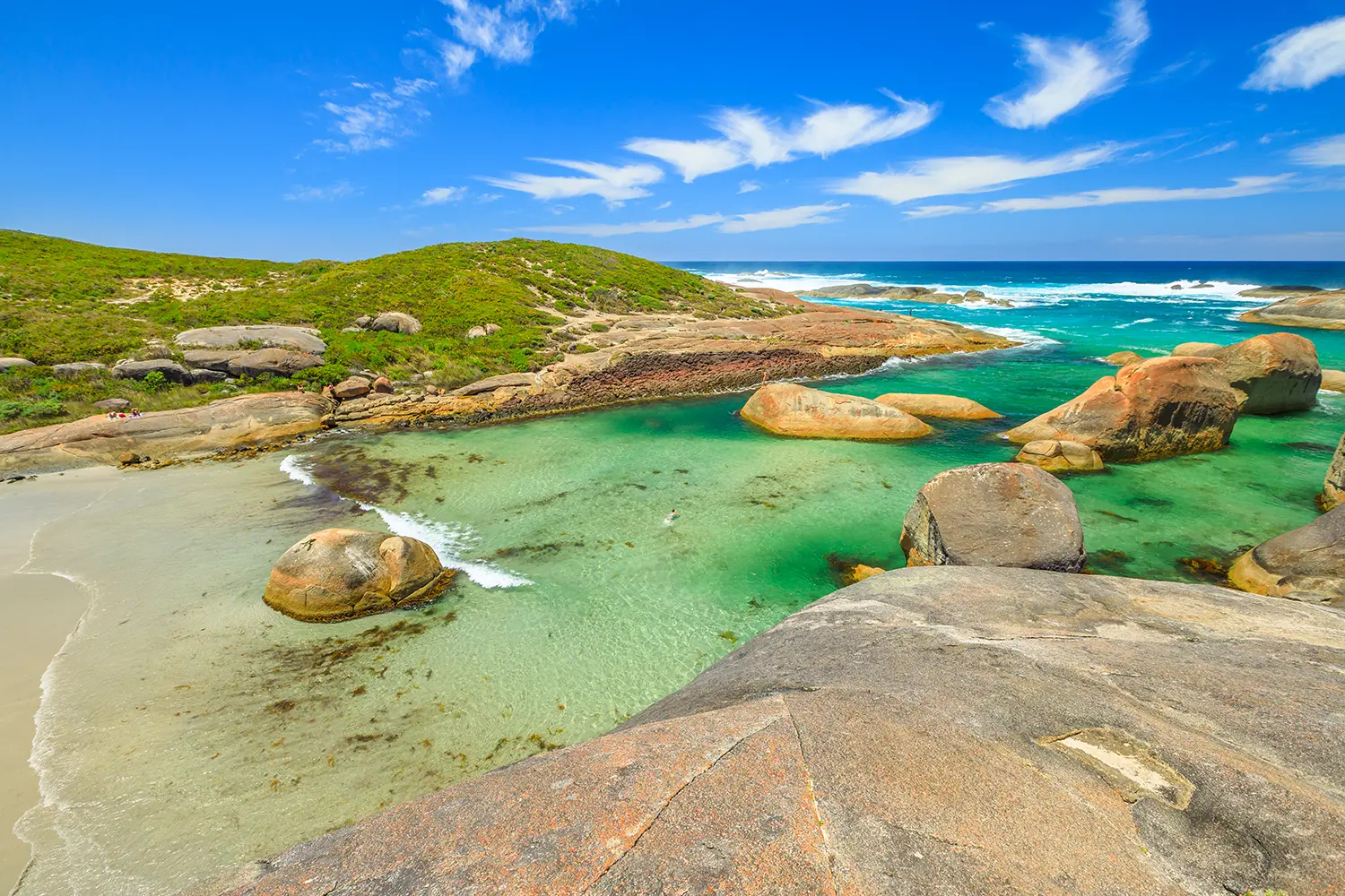 Une fois que vous avez pris suffisamment de photos de ce monument emblématique, marchez quelques minutes pour atteindrePiscine Verts(qui partage un parking avec Elephant Rocks). C'est facilement l'une des plus belles plages d'Australie occidentale, avec de superbes eaux turquoise et un sable blanc incroyablement propre. Profitez d'un après-midi de bronzage et de barbotage, ou apportez du matériel de plongée en apnée pour explorer les formations rocheuses.