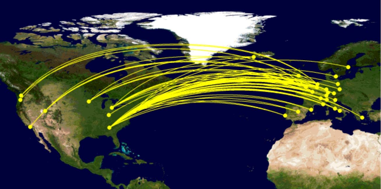 Ils opéreront à partir de New York JFK (26 liaisons), d'Atlanta (16), de Boston (huit), de Detroit (sept), de Minneapolis (cinq), de Salt Lake City (trois), de Seattle (trois), de Los Angeles (deux), de Cincinnati (une) et de Portland (une). Bien que la carte ci-dessous soit difficile à lire, elle montre les 72 itinéraires.