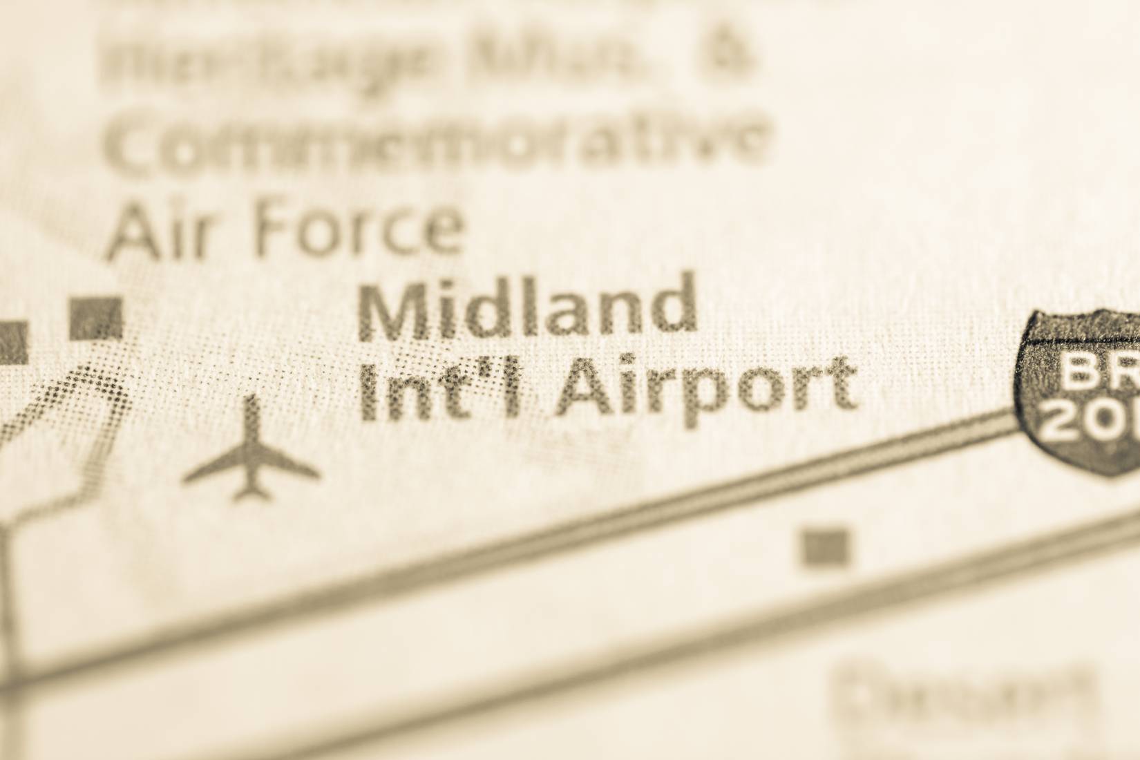 Aéroport international de Midland sur une carte, Texas, États-UnisCrédit : via Shutterstock
