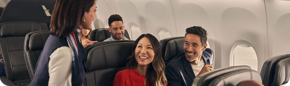 Sur les vols intérieurs allant jusqu'à 2 299 miles, les passagers peuvent profiter d'un petit-déjeuner, d'un déjeuner ou d'un dîner préparé par un chef, ainsi que d'une sélection de collations. Pour les vols de 2 300 miles et plus, un service de repas frais est disponible 24h/24 et une sélection de collations.