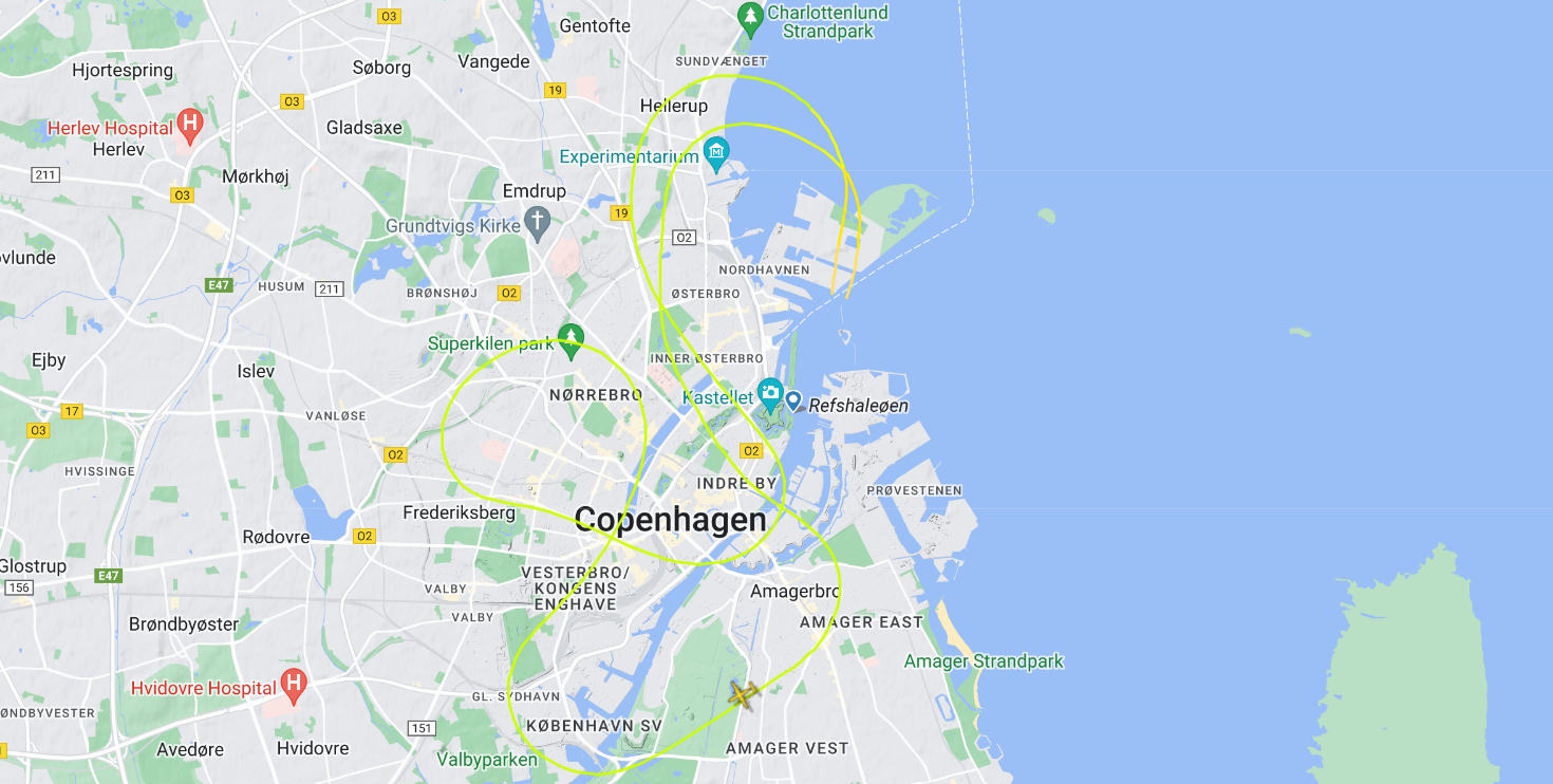 Après avoir fait demi-tour et survolé le port nord de la ville, nous nous sommes dirigés vers le sud en direction du centre-ville avant de bifurquer à gauche en direction d’Amager. Ensuite, nous avons tourné à droite en direction sud-ouest, offrant à ceux d'entre nous assis du côté bâbord de l'avion une vue magnifique sur l'aéroport de Copenhague Kastrup (CPH), qui, après la pluie matinale, resplendissait sous le soleil de midi.