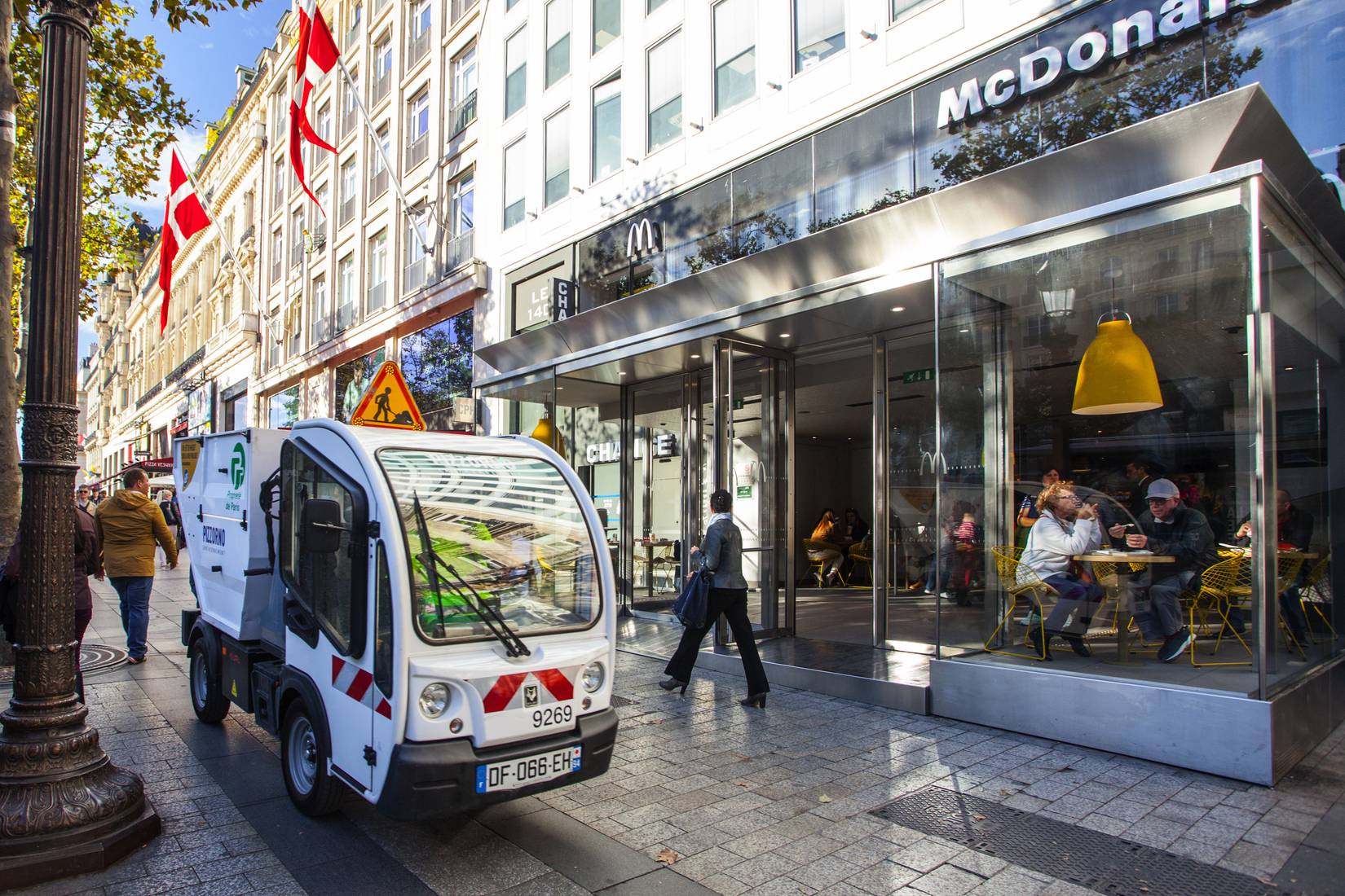 Panneau Mcdonald's blanc sur les Champs Elysées à Paris