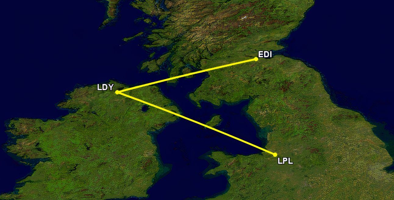 Les détails des deux itinéraires sont les suivants. La paire d'aéroports la plus courte est celle d'Édimbourg-Derry, avec seulement 140 milles marins (260 km). L'examen de l'ensemble du réseau de la compagnie aérienne montre qu'il s'agira de sa septième liaison la plus courte, à égalité avec Londres Gatwick-Jersey.