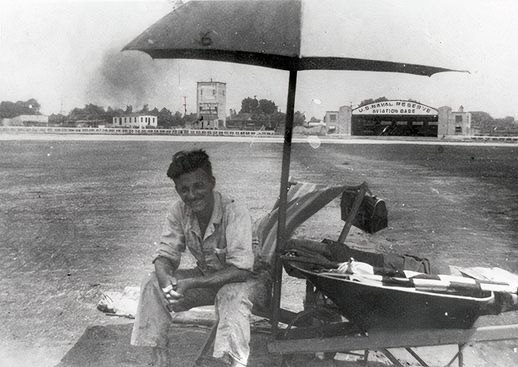 Selon la NATCA, la tour de contrôle de League était une brouette contenant ses drapeaux, un parapluie, un déjeuner, de l’eau et un bloc-notes. En quelques années, ses drapeaux furent remplacés par des « canons légers » qui utilisaient des couleurs et des flashs pour communiquer avec les pilotes.