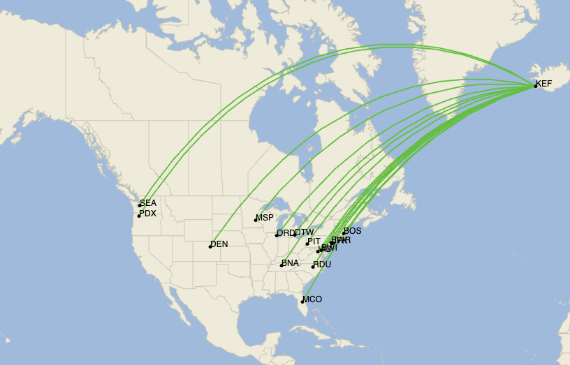 Le réseau d’Icelandair aux États-Unis couvre 15 destinations tout au long du mois de juin prochain. Les aéroports bénéficiant de la plus grande capacité d'Icelandair sont