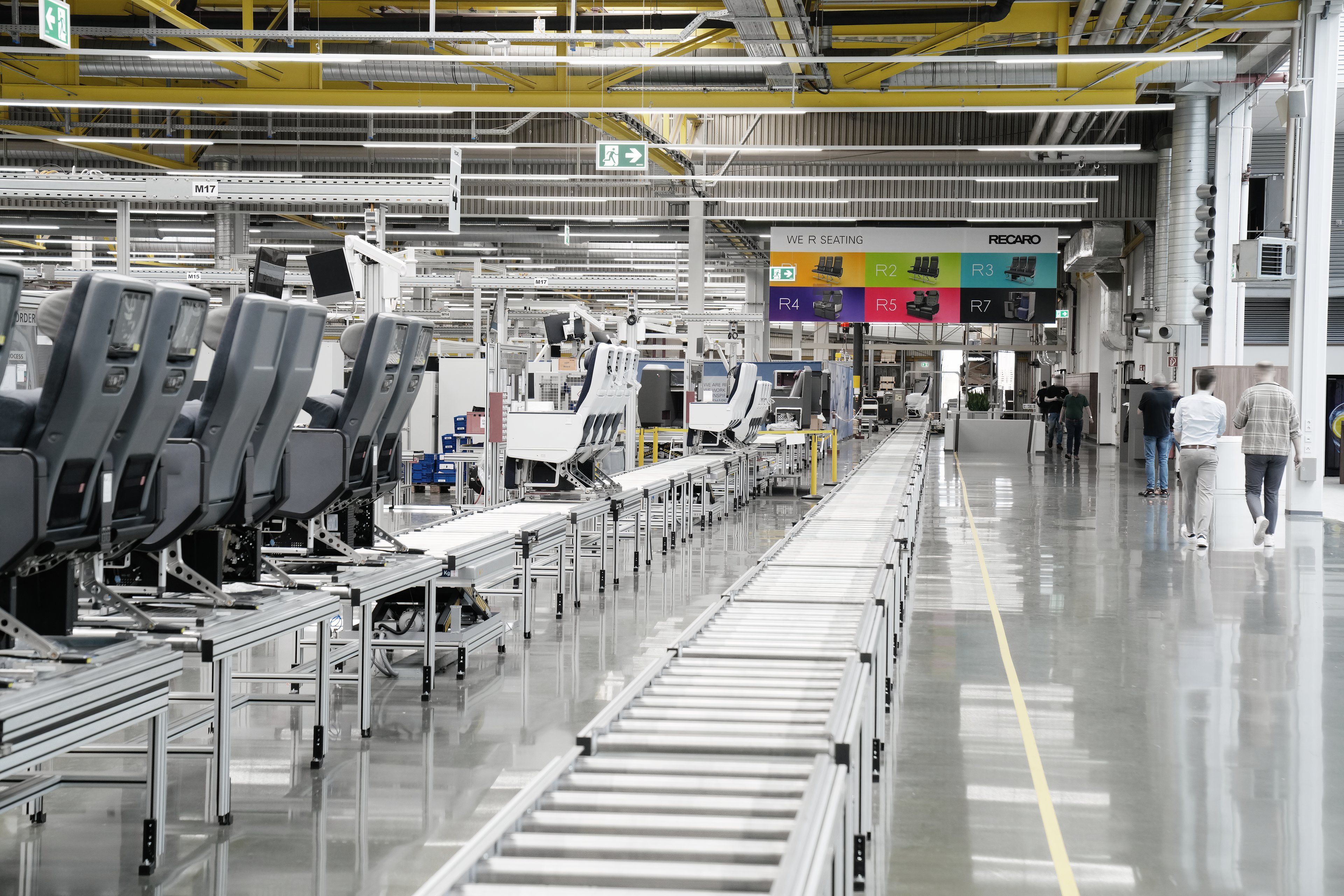 Hiller et Schmid ont expliqué qu'il existe à Schwäbisch Hall six chaînes d'assemblage final de 43 mètres de long, chacune comportant 17 modules différents. Chaque ligne fonctionne avec 20 salariés et le montage des sièges est entièrement manuel. Autrement dit, il n’y a pas de processus automatisés dans la chaîne d’assemblage final. Cela s'étend même au déplacement des sièges le long de la chaîne de production. Les employés poussent le siège jusqu'à la station suivante lorsqu'ils sont prêts.