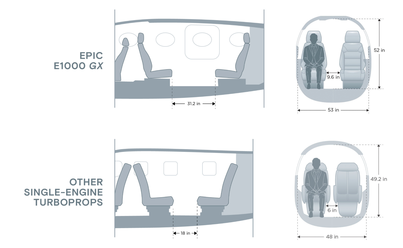 Epic Aircraft a déclaré : « Il peut être difficile d'imaginer atteindre des vitesses supérieures à 333 nœuds dans un avion monomoteur et encore plus difficile de comprendre le frisson d'une montée de 4 000 pieds par minute. »