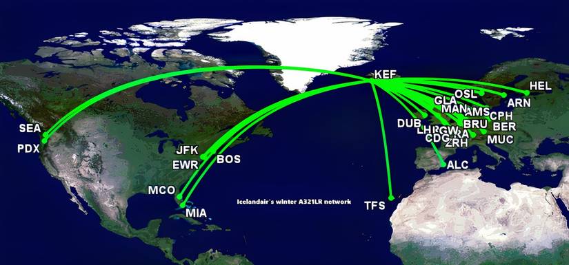 Keflavík à Seattlesera le marché le plus populaire de l'A321LR pendant l'intersaison. Le monocouloir fonctionnera quotidiennement jusqu'au 26 mars. La fréquence de la variante à Seattle passera à deux par jour le 27 mars, et sera maintenue jusqu'en mai. L’A321LR cessera alors de circuler sur cette route, New York JFK et Newark devenant les principales routes.