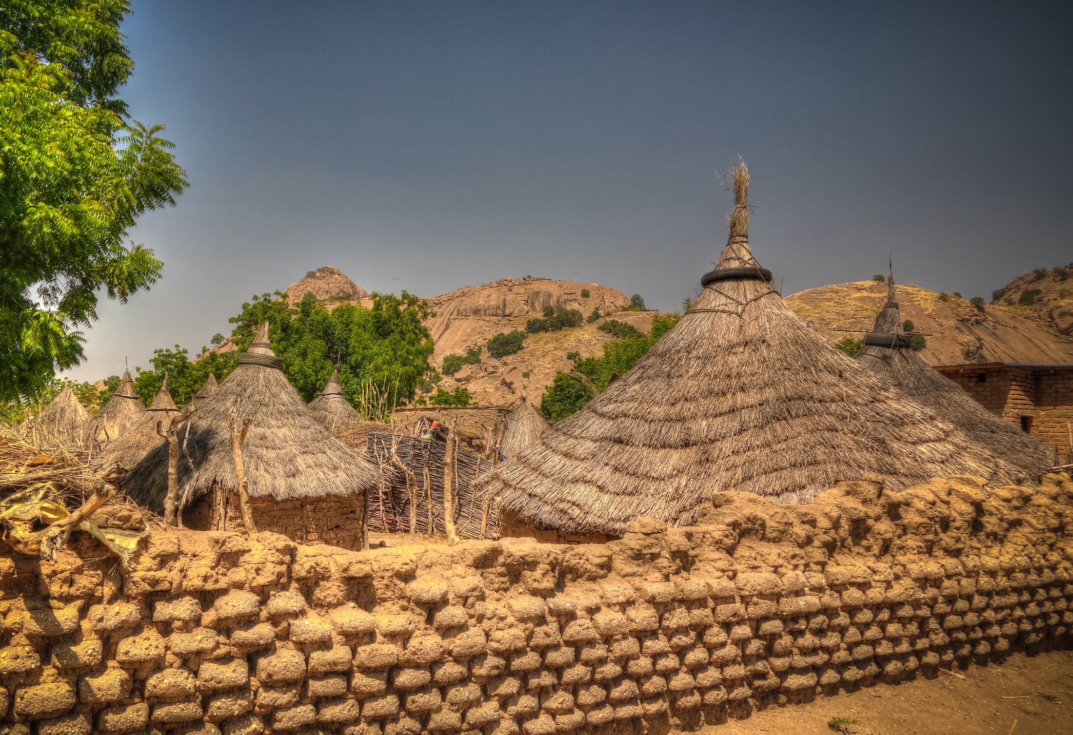 Paysage avec le village Mataya de la tribu Sara, Guera, Tchad
