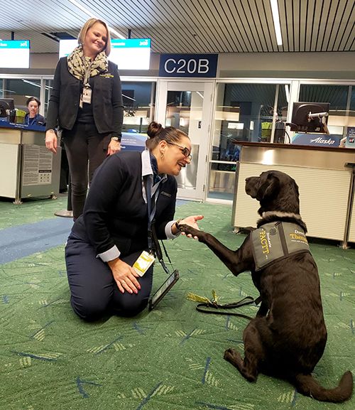 PDX comprend que voyager peut être stressant, c'est pourquoi il a apporté son aide pour apporter calme et confort aux voyageurs et aux employés. DoveLewis, le programme de thérapie canine PDX, rassemble plus de 20 équipes de thérapie canine hautement qualifiées à divers endroits de l'aéroport. Avec leurs maîtres, les chiens parcourent le terminal à la recherche d'animaux de compagnie, de câlins, de quelqu'un qu'ils peuvent saluer avec le nez mouillé et d'endroits confortables pour se reposer à côté des voyageurs PDX.