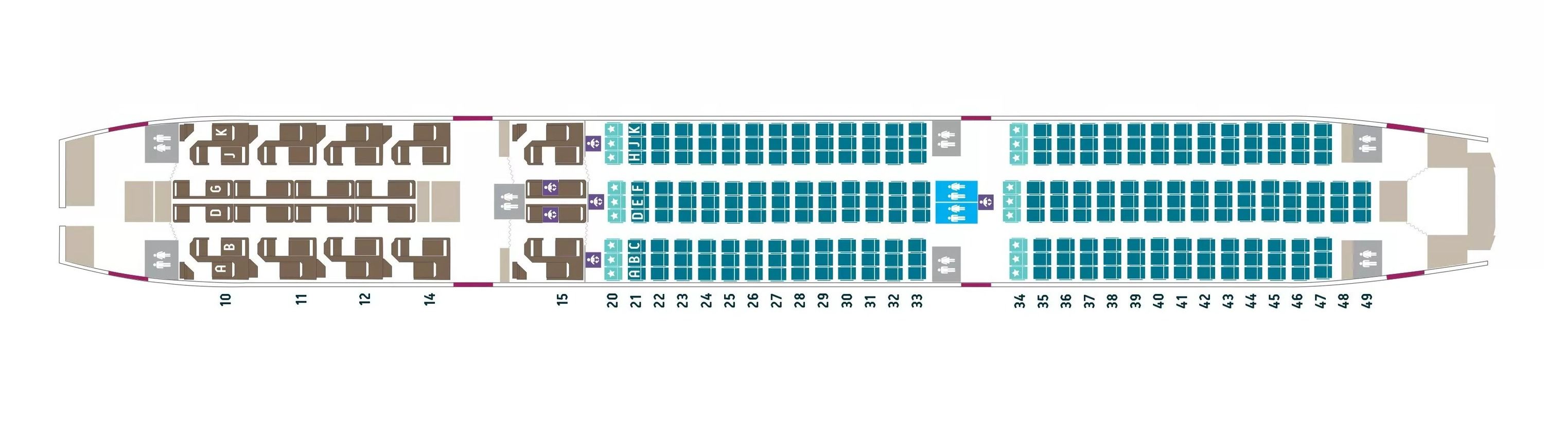 Dans la cabine de classe affaires, on retrouve 5 rangées de suites 2-2-2, chacune avec un accès direct au couloir grâce à un astucieux échelonnement.AéroLOPArévèle qu'il s'agit des suites Collins Aerospace Apex. Pendant ce temps, dans la cabine économique se trouvent 3-3-3 sièges également fabriqués par Collins. Il ne s’agit pas d’un Boeing 787-9 d’Oman Air doté de la cabine « Business Studio », proche de la première classe.