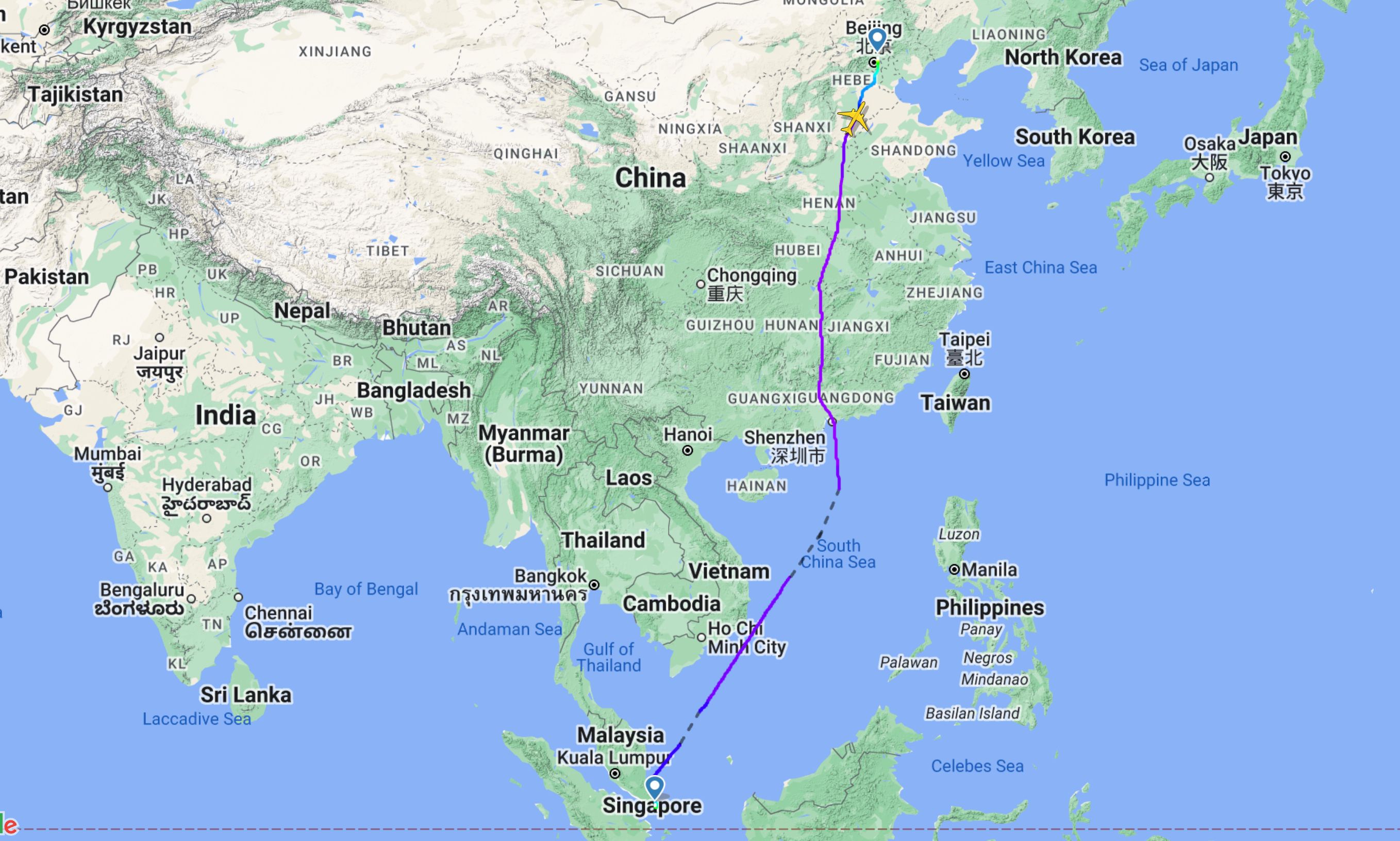 Les services actuels vers Pékin Capital utilisent une combinaison d'Airbus A350-900 et de Boeing 777-300ER, le 787-10 Dreamliner étant opérationnel entre le 1er septembre et le 26 octobre de cette année. Hier, le vol SIA SQ802 a décollé de Singapour à 08h42 et, après un vol de 5h39, a atterri à Pékin Capital (PEK) à 14h21.