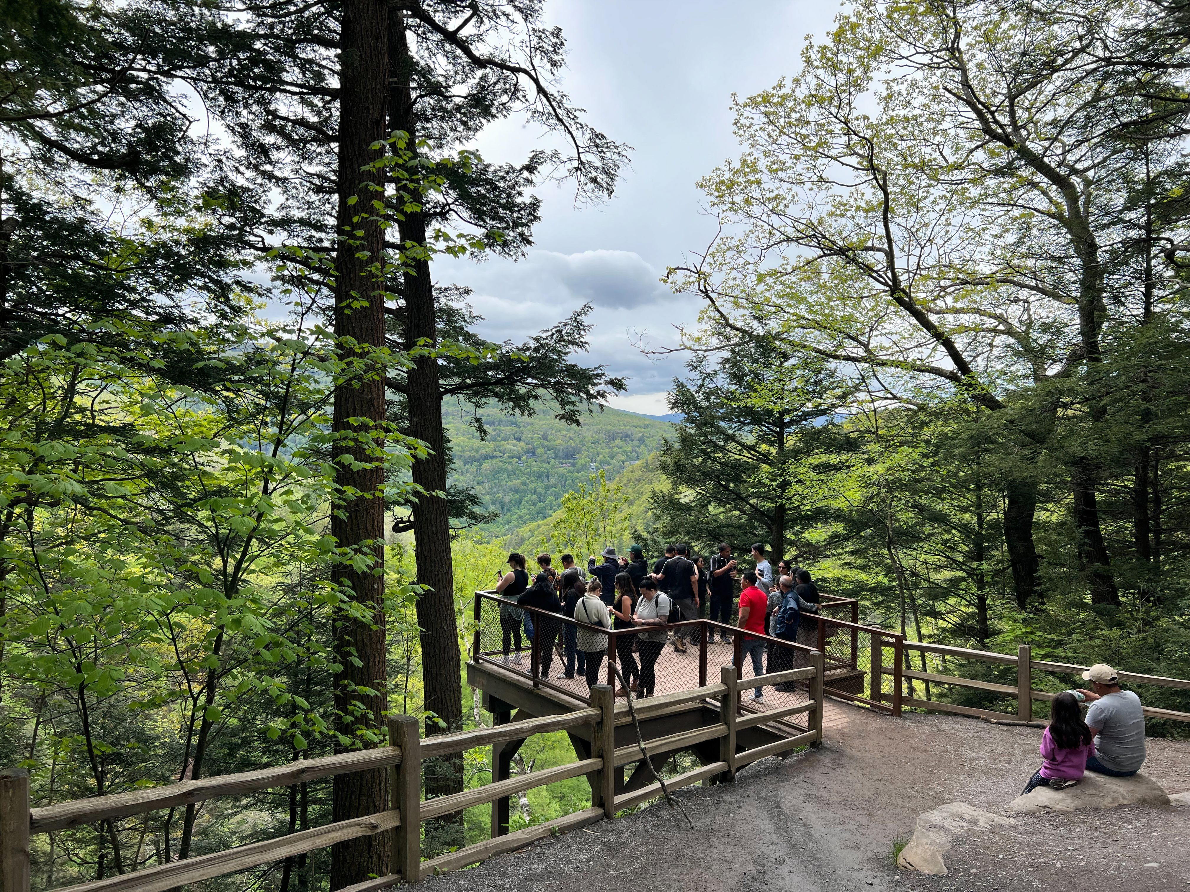 Les visiteurs se rassemblent sur la plate-forme d'observation pour voir les chutes Kaaterskill d'en haut
