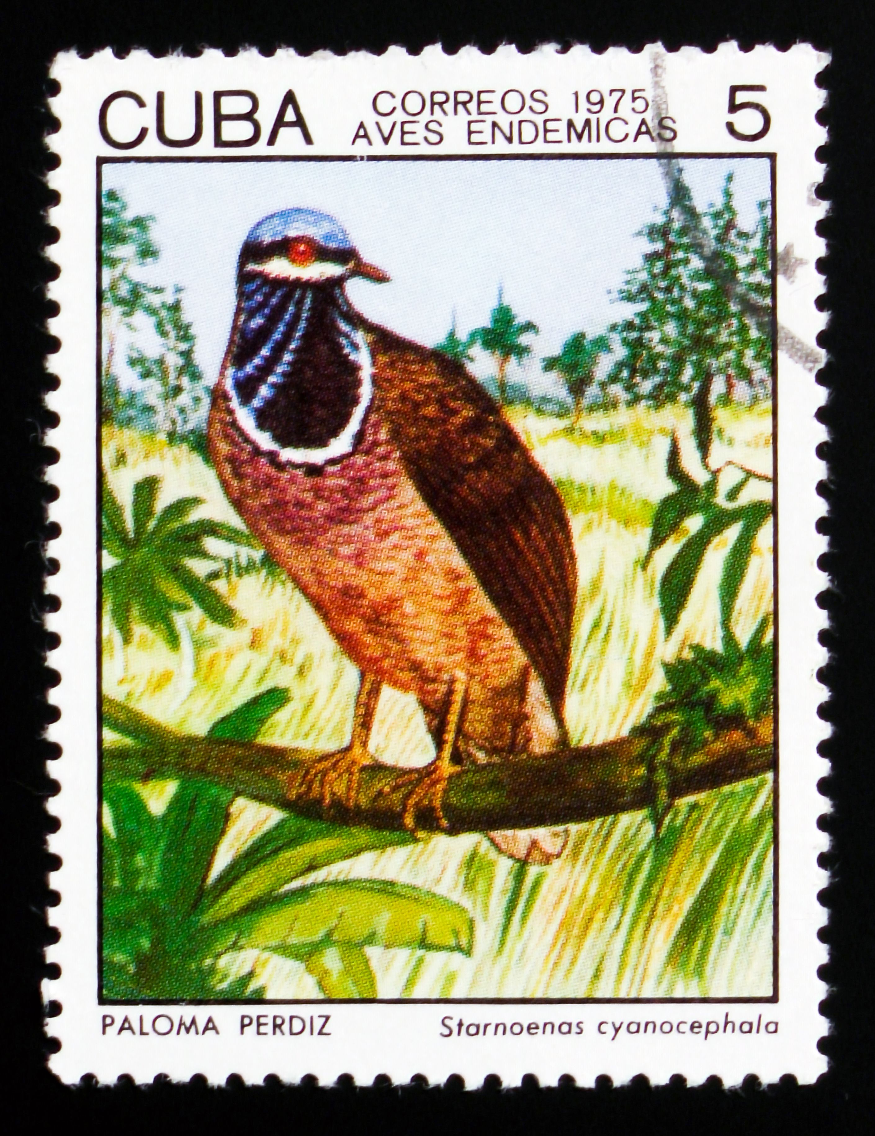 La tourterelle à tête bleue apparaît également sur certains timbres-poste de Cuba (au cas où vous ne parviendriez pas à en voir une vraie dans la nature !).