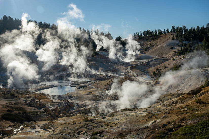 Le parc national volcanique de Lassen abrite une vaste gamme de caractéristiques géothermiques (hydrothermales) façonnées par la chaleur intense sous sa surface. La zone hydrothermale la plus célèbre du parc est Bumpass Hell, un bassin surnaturel rempli de boue bouillonnante et de sources chaudes colorées. Sulphur Works, situé juste à côté de Lassen Loop, offre un accès facile aux évents de vapeur sifflante et aux piscines acides bouillantes. D'autres sites comme leLa cuisine du diableetLac des sources bouillantesoffrir aux visiteurs des exemples plus éloignés et spectaculaires de l’activité hydrothermale au sein du parc.