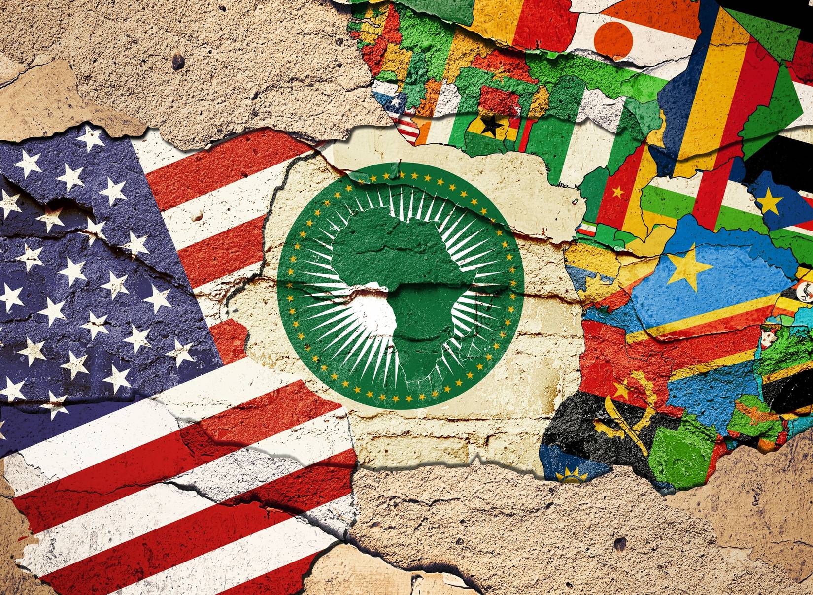 Union africaine avec les États-Unis/drapeau américain et drapeaux africains
