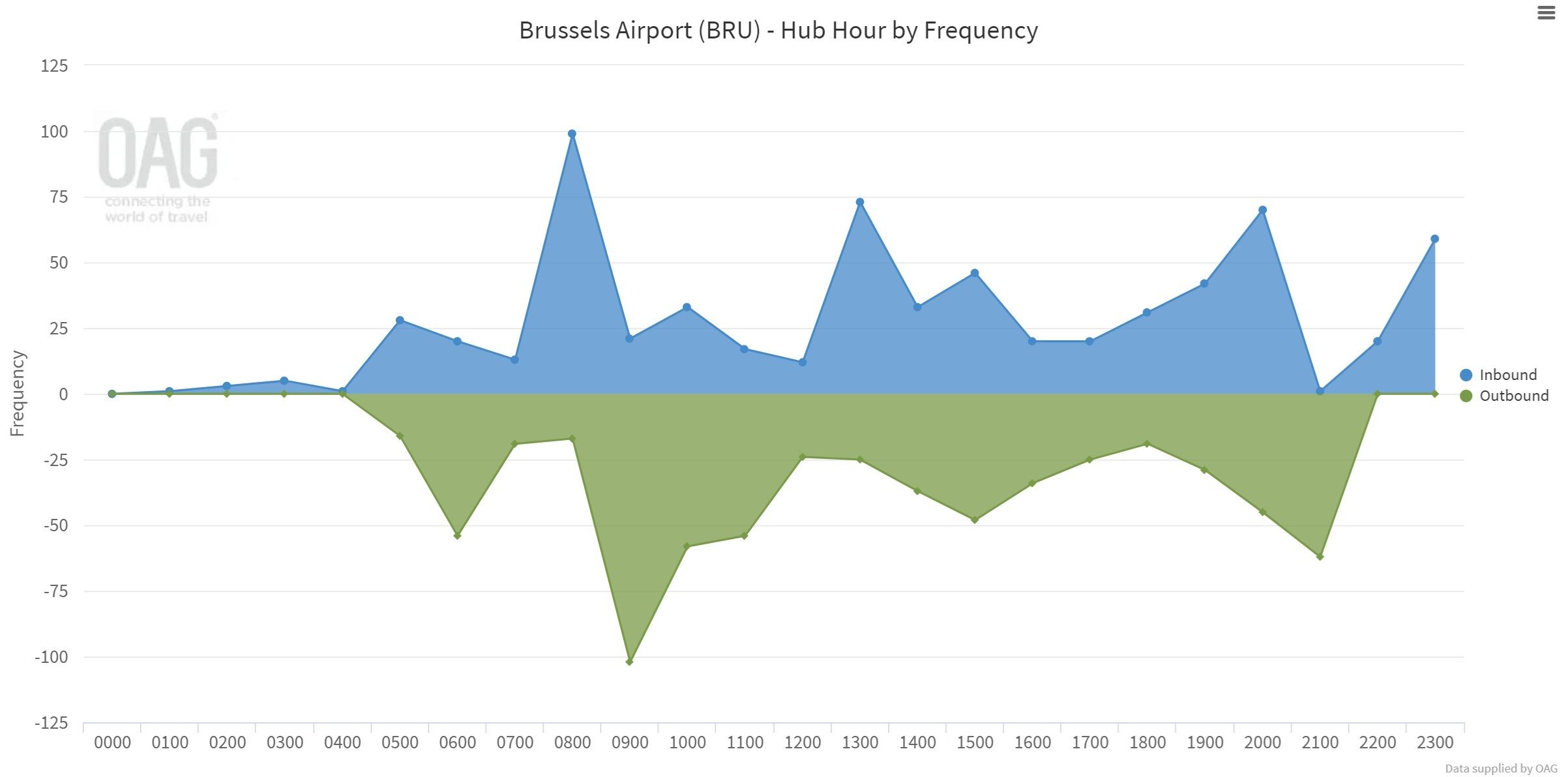 Les départs actuels de Brussels Airlines vers son hub se présentent comme suit par période, selon les données d'OAG.
