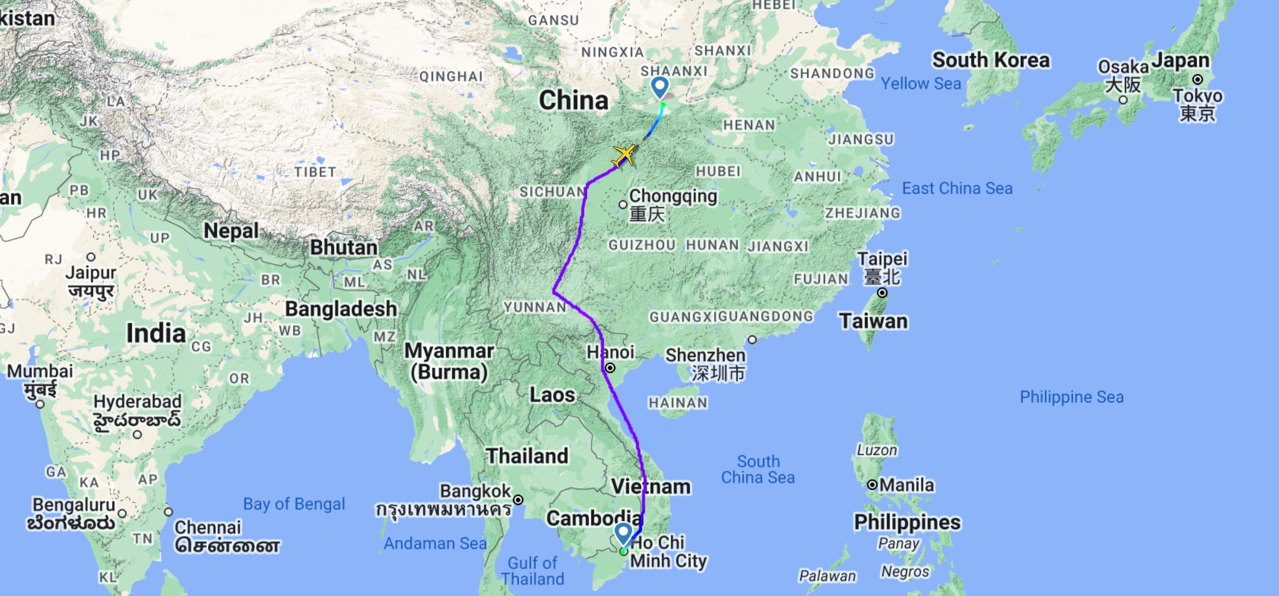 L'Airbus A320 a décollé de Xi'an sous le vol VJ3933 le 2 juillet à 03h52 et est arrivé à SGN à 06h43. Après son retour en Chine mardi, elle a opéré quatre vols supplémentaires, dont des vols aller-retour de Hô Chi Minh-Ville à Dong Hoi (VDH) et à l'aéroport international de Séoul Incheon (ICN), en Corée du Sud.