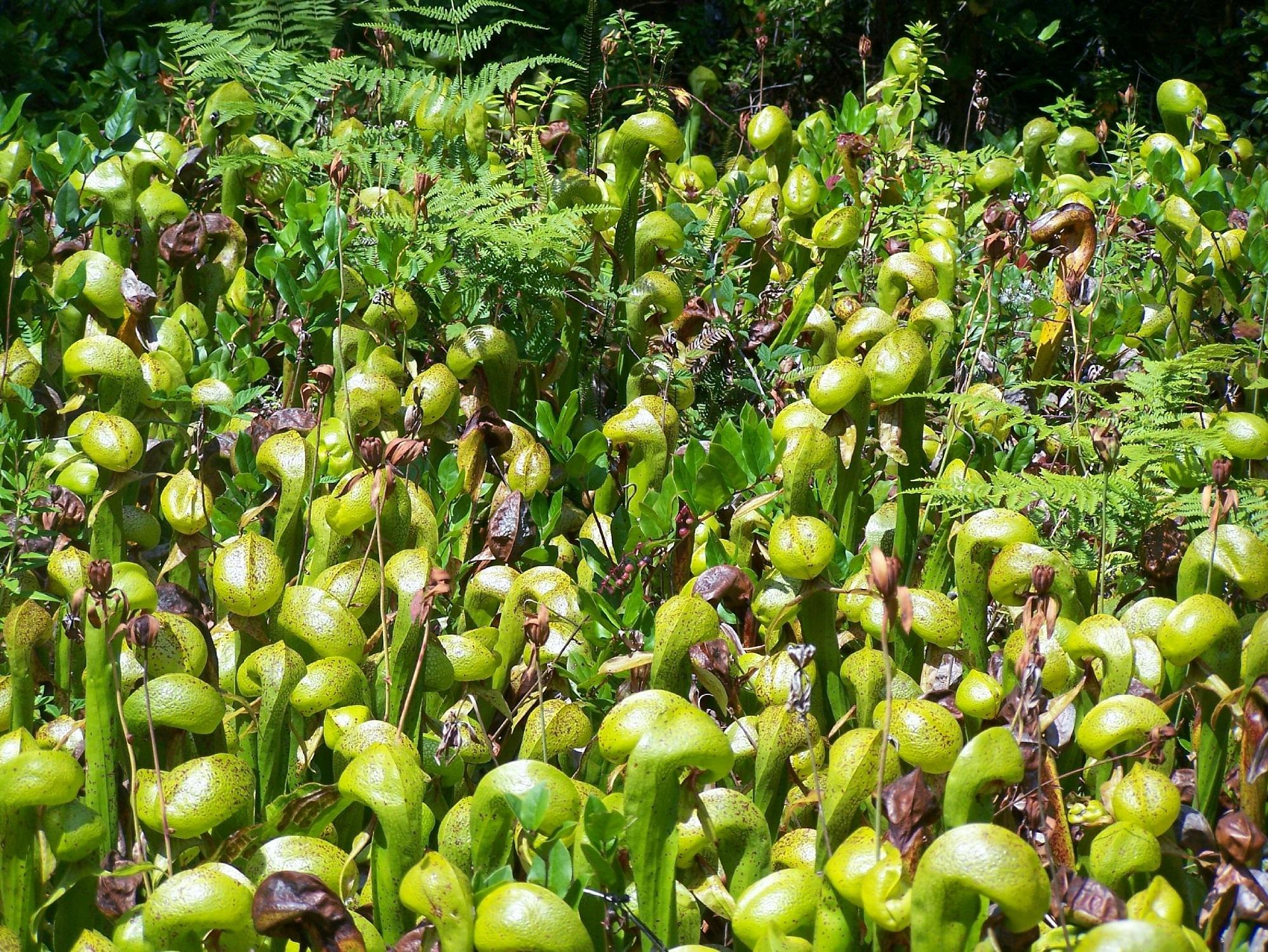 De nombreuses régions des États-Unis abritent des sarracénies. Ces plantes carnivores ont des structures en forme de pichet qui se remplissent de liquide, utilisé pour attirer et digérer les insectes sans méfiance. Les lys Cobra sont une variante des plantes à pichet, nommées d'après leur forme en forme de serpent.