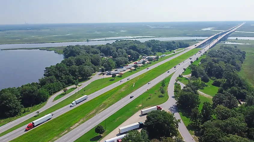 Vue aérienne du pont de la rivière Pascagoula en direction de Gautier, Mississippi.