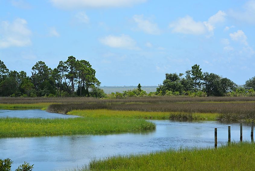Le ruisseau se jette dans le St. George Sound, près de Carrabelle, en Floride.