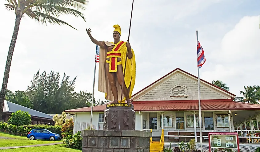 Une statue du roi Kamehameha dans la petite ville de Hawi. (Crédit image Mystic Stock Photography via Shutterstock.)