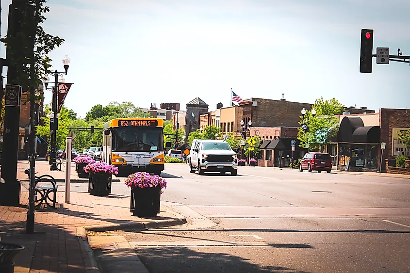 Scène de rue du centre-ville d'Anoka, Minnesota. Crédit image Mailcaroline via Shutterstock