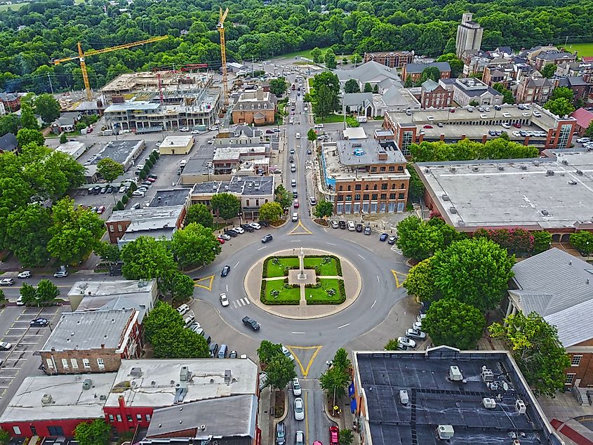 Vue aérienne du centre-ville de Franklin, Tennessee.