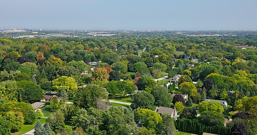 Prise de vue aérienne de Brookfield, Wisconsin, par temps clair à l'automne.