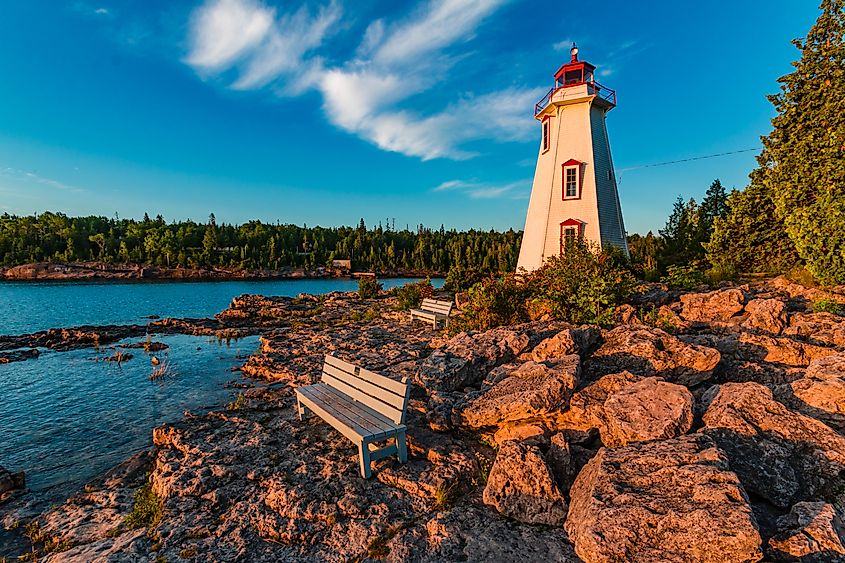 Big et Little Tub, les ports jumeaux de Tobermory, ont attiré les pêcheurs à la fin des années 1800. Tobermory est un joyau des vacances canadiennes sur les Grands Lacs, parfait pour une escapade loin des États-Unis, avec un accès par bateau et des chargeurs de véhicules électriques dans certains hébergements en bord de route. Les eaux incroyablement claires attirent les plongeurs du monde entier, ainsi que les excursions en bateau à fond de verre, comme les croisières Blue Heron de Tobermory, vers une épave du XIXe siècle. Pendant l'été, profitez des cours pour débutants et des locations pour la plongée sous-marine ou les excursions en bateau dans le parc marin national Fathom Five.