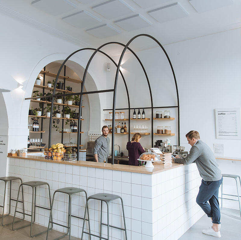 Un café devenu coworking devenu coliving,Café de cowork extérieurallie la décontraction et la flexibilité d'un café et des fonctionnalités de coworking.