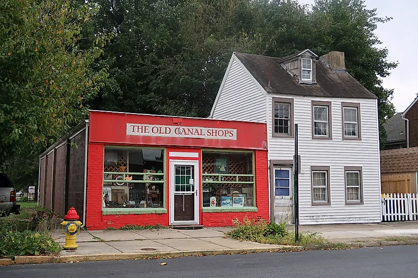 Extérieur des boutiques du vieux canal, Delaware City, Delaware. Crédit image John Arehart via Shutterstock