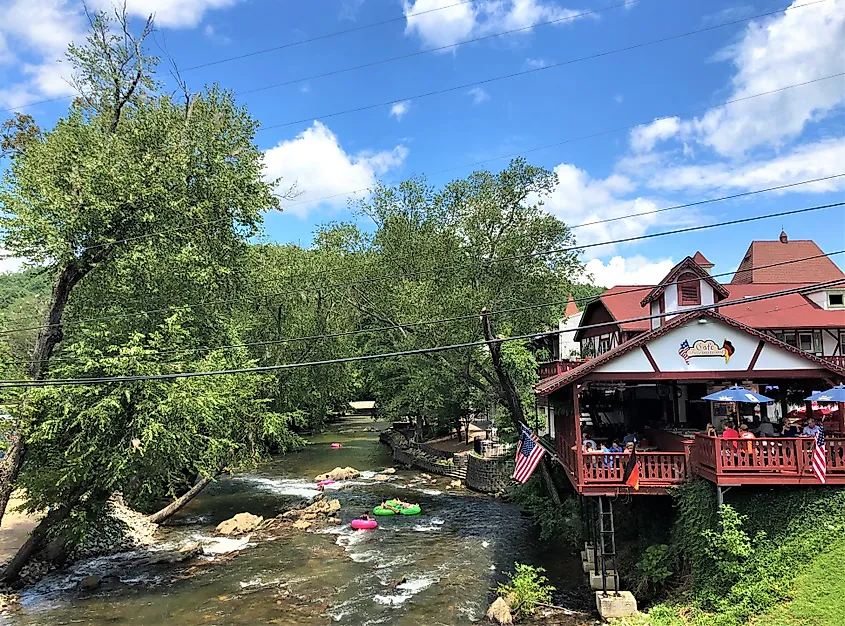 Les touristes profitent du tubing dans la rivière Chattahoochee à Helen, en Géorgie. Crédit éditorial : Ancha Chiangmai / Shutterstock.com.