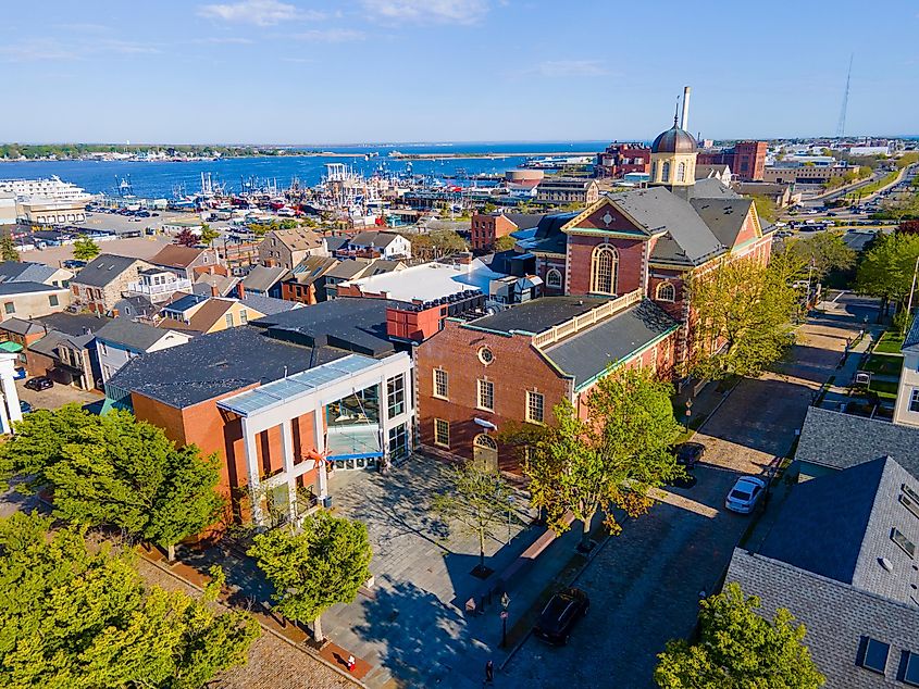 Vue aérienne du bâtiment du New Bedford Whaling Museum, dans le centre-ville historique de New Bedford, Massachusetts