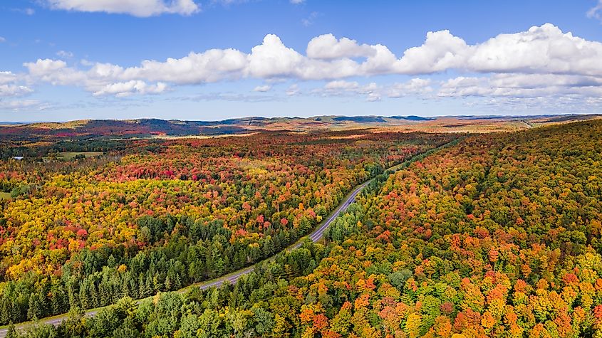 La US Route 2 serpente à travers le paysage automnal spectaculaire de la péninsule supérieure du Michigan.