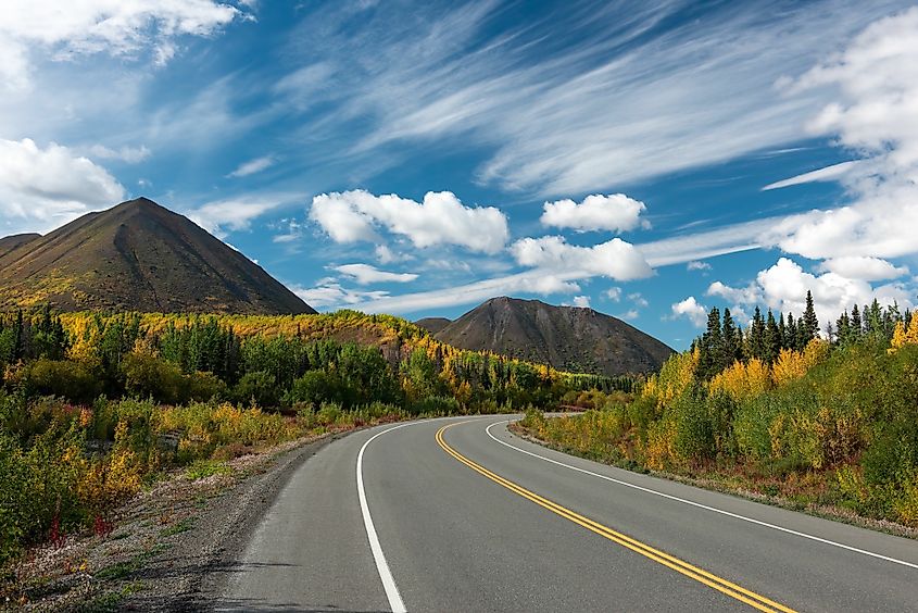 La route de l'Alaska traverse les montagnes spectaculaires de l'Alaska.
