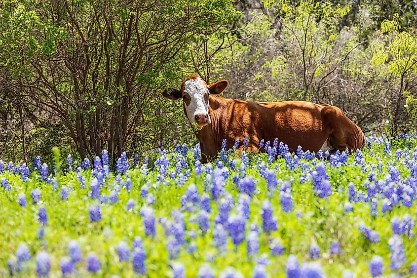 Une vache dans la magnifique campagne près de Johnson City, au Texas.