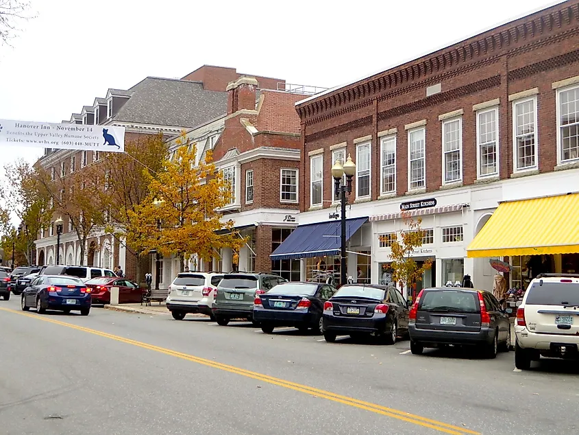 Rue principale à Hanovre, New Hampshire. Crédit image Ken Gallager sur Wikipedia anglais via Wikimedia Commons.