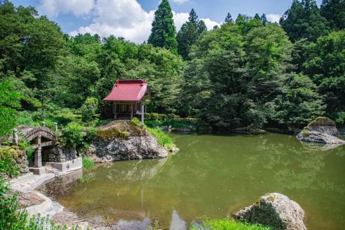 Tsukimizu-no-Ike est un étang formé par l'eau de source accumulée dans une dépression créée par un glissement de terrain à Itoigawa.