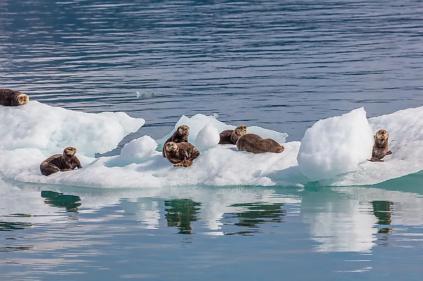 Phoques reposant sur la glace de mer dans le détroit de Prince William, en Alaska.
