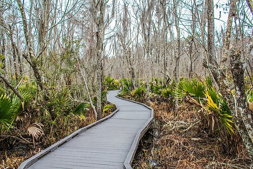Pendant les mois d’été, vous les apercevrez prendre le soleil sur des bûches ou flotter avec leurs yeux au-dessus de l’eau. Les alligators femelles construisent leurs nids dans les zones surélevées parmi les cyprès, en utilisant une végétation qui fermente et aide à incuber leurs œufs – ce qui témoigne de la parfaite adéquation de cet écosystème à leurs besoins.