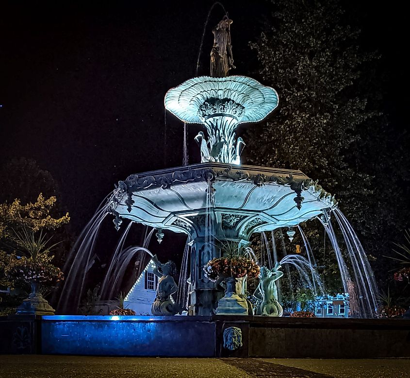 Fontaine de Broadway la nuit à Madison, Indiana. Crédit éditorial : Brianasiracuse / Shutterstock.com