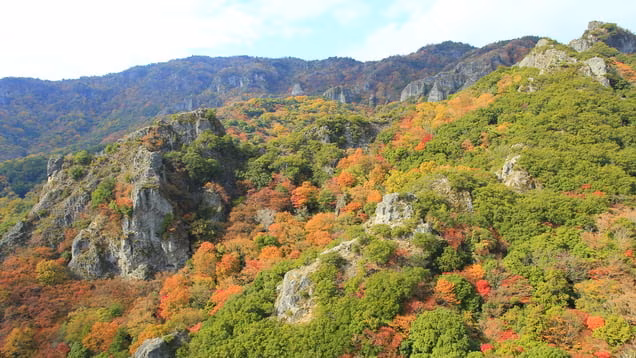 Le célèbre feuillage d'automne de Shodoshima, les gorges de Kankakei, est l'une des trois grandes gorges panoramiques du Japon. Formé il y a environ 13 millions d'années par l'activité volcanique, son groupe de roches aux formes étranges crée un paysage accidenté et majestueux qui semble être aux antipodes de la calme mer intérieure de Seto.